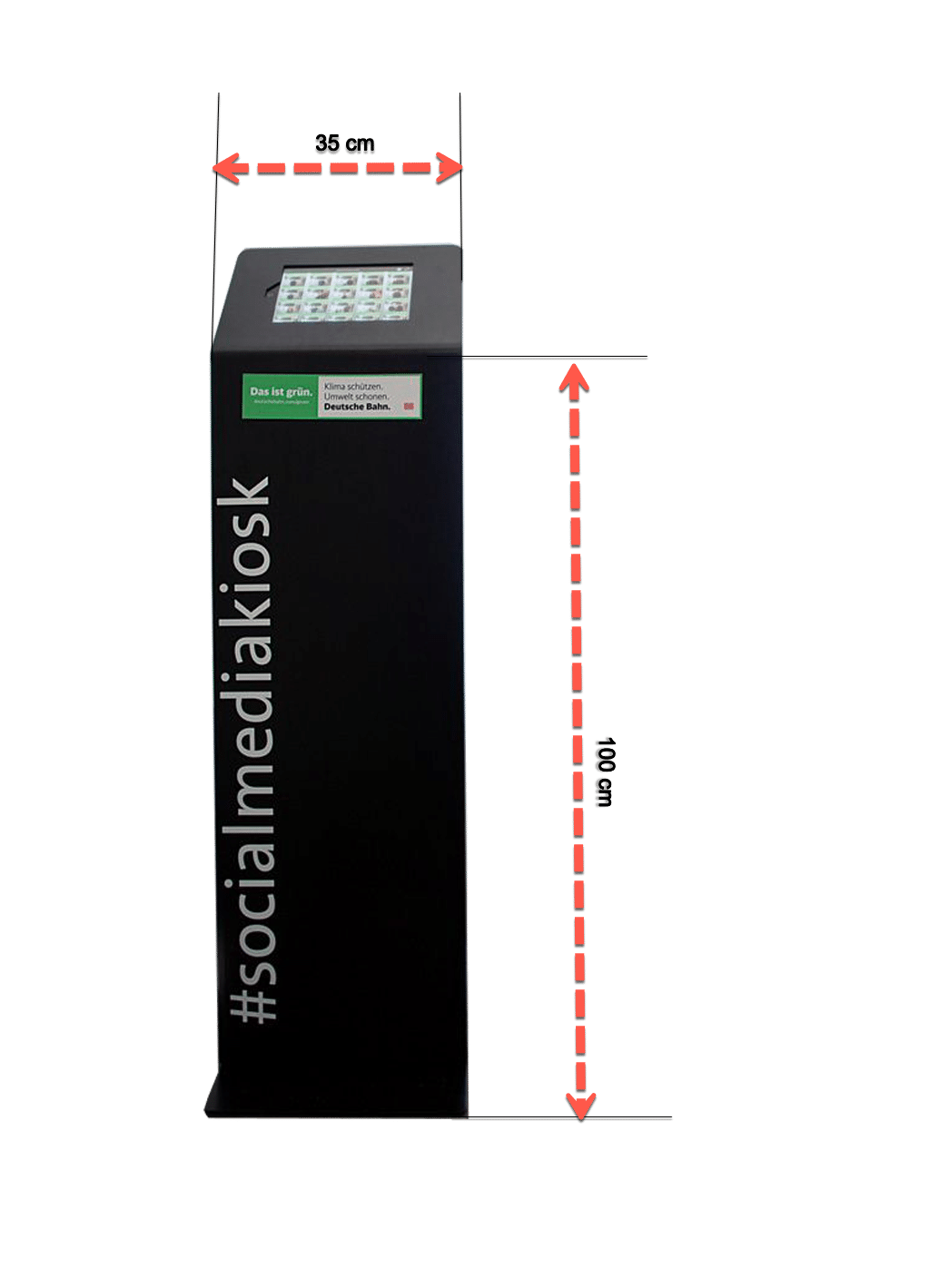 Für die Branding-Option des Social Media Kiosk stehen Ihnen frei individualisierbare Magnetfolien, Folienplots oder Aufkleber zur Verfügung.